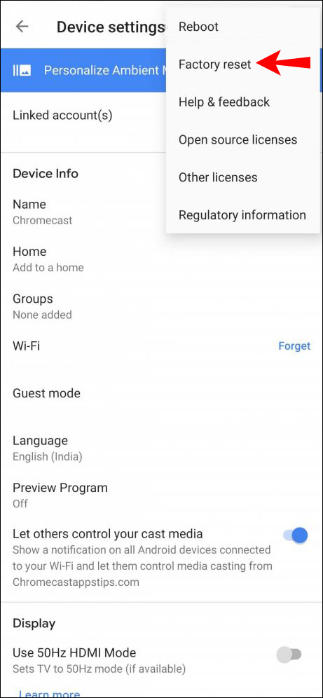 Still no connection joy? Then it’s time to bring in the big guns and try resetting your Chromecast back to its original settings. This will change your Chromecast number and you’ll need to complete the entire setup process again. Luckily, it will not delete any of your app data. By doing this, it will hopefully operate as it did when you first purchased it.