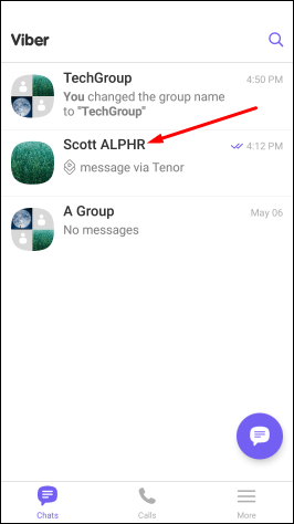 If you’ve already messaged or called the person on Viber on Android, you can change their name by going back to the chat: