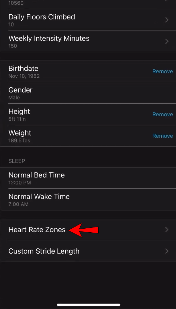 - Scroll down and find the “Heart Rate Zones” section.