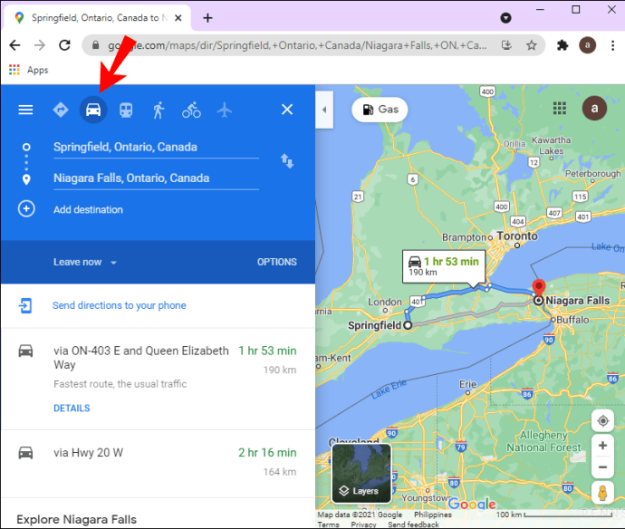 - Click on “Directions” on the left side of your screen.