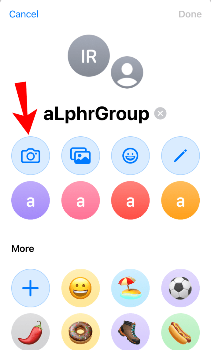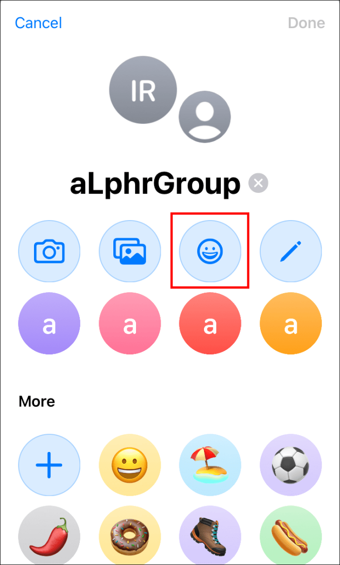 4. Scroll down to choose a pre-selected group chat picture or select one of the four icons to create your own: