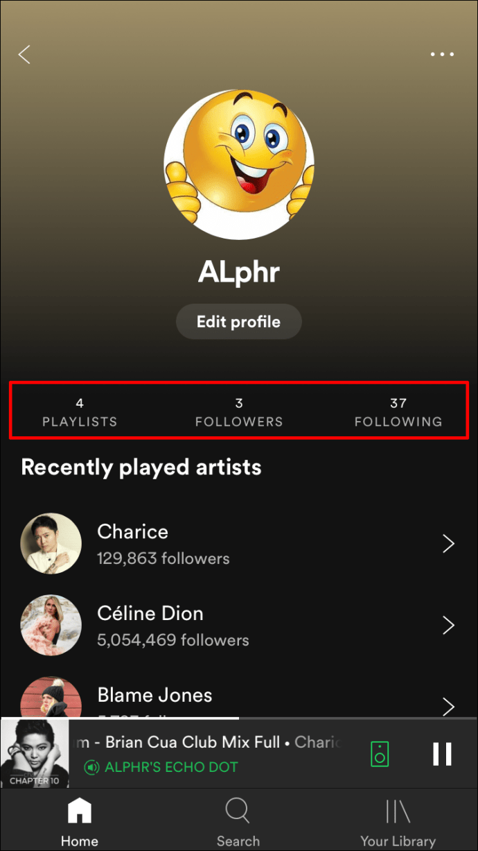 - You’ll see the number of your playlist, followers, and the people you’re following.